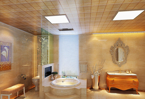 独立的取暖灯、独立的照明灯、独立的换气扇,可合理排布安装位置,克服了传统吊顶安装位置的尴尬,可将取暖灯安装在淋浴区正上方、照明灯安装在房间中间或洗手台的位置,换气扇安装在坐便器正上方,从而可使每一项功能都安放在了*需要的空间位置上。